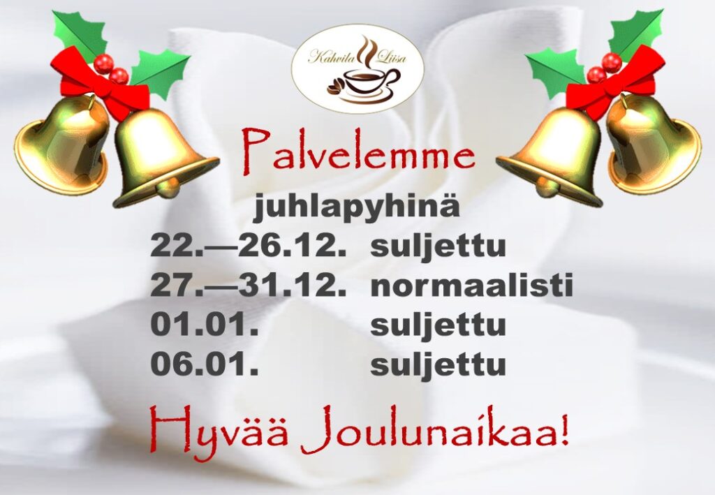 Olemma suljettuna Jouluviikolla 52 22.12-26.12.2025 Välinen aika . Hyvää Joulua